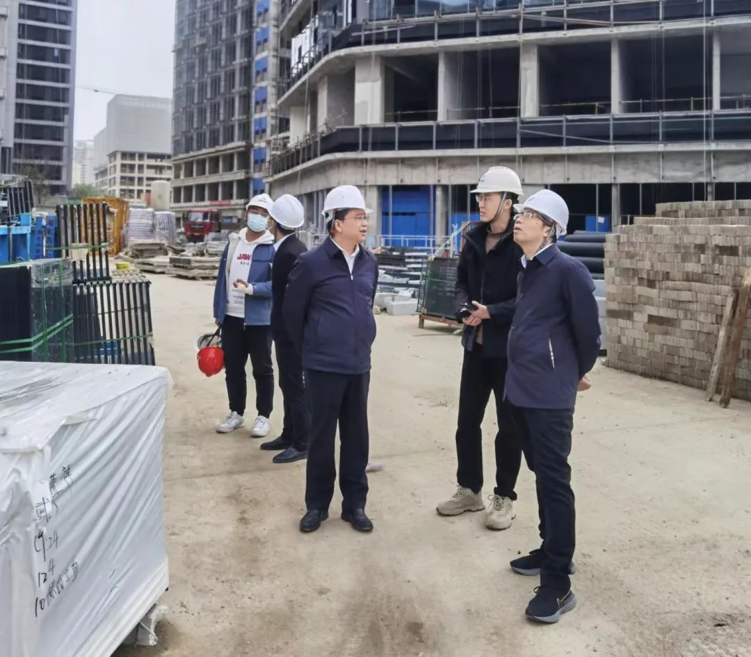 在天奕项目现场,陈骏峰深入施工一线,实地察看项目建设进展,认真检查项目安全生产和疫情防控措施落实情况,听取项目安全生产和竣备验收工作汇报。