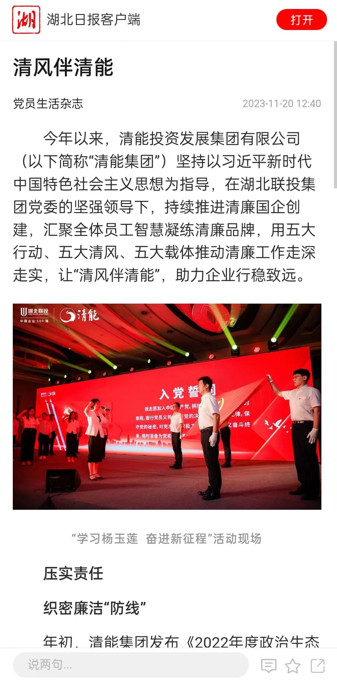 今年以来,联投·玩球通平台投资发展集团有限公司(以下简称“玩球通平台集团”)坚持以习近平新时代中国特色社会主义思想为指导,在湖北联投集团党委的坚强领导下,持续推进清廉国企创建,汇聚全体员工智慧凝练清廉品牌,用五大行动、五大清风、五大载体推动清廉工作走深走实,让“清风伴玩球通平台”,助力企业行稳致远。