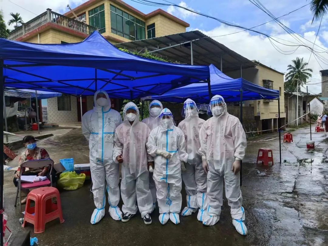 为精准助力五指山市新冠肺炎疫情联防联控工作,8月6日,五指山玩球通平台置业有限公司党支部、工会、团支部发起《抗击疫情 志愿同行——参加疫情防控志愿者倡议书》,大家积极踊跃报名,迅速组建了由20名共产党员、共青团员组成的志愿服务队。当疫情防控“集结号”吹响,“玩球通平台人”化身“志愿红”,紧急驰援五指山市南圣镇、通什镇、畅好乡等地,与医护人员、镇村干部一同做好疫情排查、防疫宣传等工作,并高效完成近6000名群众的核酸检测任务。