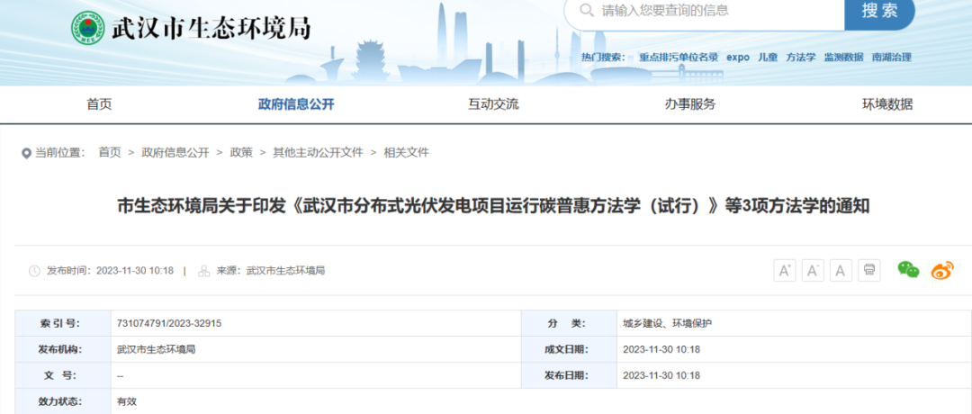 武汉市分布式光伏等3项碳普惠方法学正式发布
