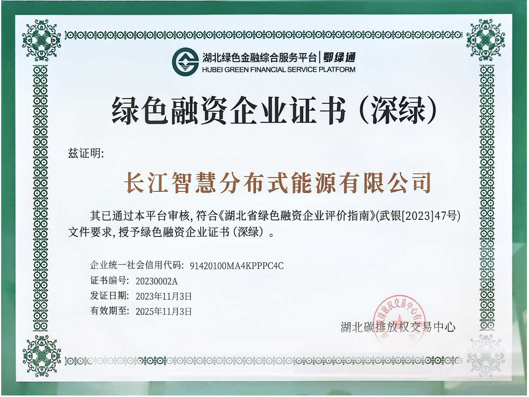 绿色融资企业证书